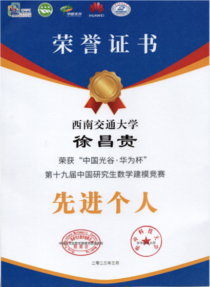 徐昌贵,男,副教授。从1998年至今,担任太阳集团tcy8722历届数学建模竞赛指导教师,指导员工共获得国家一等奖10项,国家二等奖14项,省奖26项。获得全国百名优秀数学建模指导教师荣誉,第十九届中国研究生数学建模“先进个人”荣誉称号。