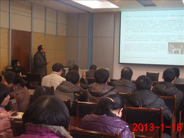 2013年1月18日下午公司徐扬教授做了学术科研团队工作进展情况的学术报告。全院教师聆听了报告,对徐扬教授及其带领的团队所付出的艰辛的努力和取得的丰收成果报以热烈的掌声。
