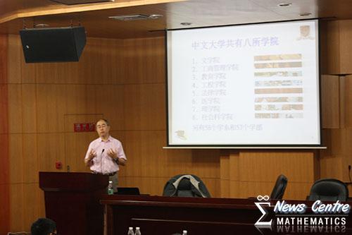 会议伊始,被介绍上台的陈汉夫教授用流利的英语为大家讲解的香港中文大学概况以及报考研究生等诸多问题。香港中文大学,成立于1963年,是香港第二所大学,也是八所受政府香港大学教育资助委员会资助并可颁授学位的高等教育院校之一。其为香港唯一实行书院联邦制的高校。香港中大曾经有4名教授和1名董事长获得诺贝尔奖。现时以中国研究、生物医学科学、讯息科学、经济与金融及地球信息与地球科学为五大重点研究领域。大学共有八所学术公司,大部分的课程均以英语为教学语言。