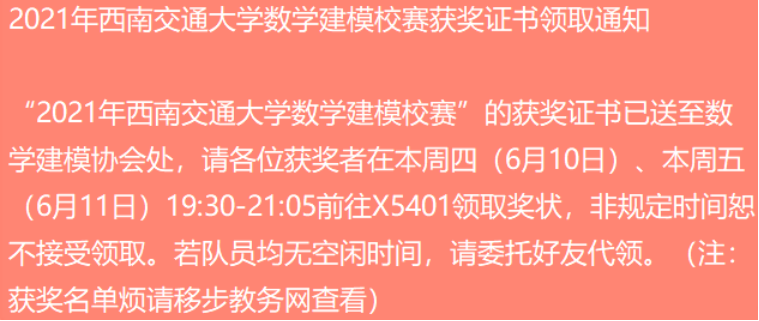 随后,数学建模协会在最短时间内完成了奖状的制作、校对、审核,并交由公司盖章,次日便发布了获奖证书的领取通知。