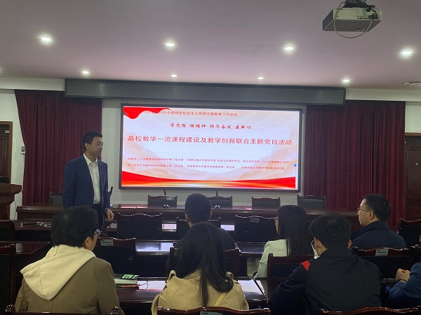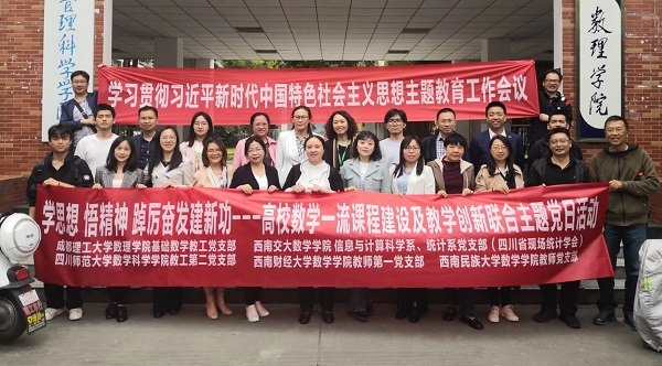为深入学习贯彻习近平新时代中国特色社会主义思想,学习贯彻党的二十大精神,全面贯彻落实太阳集团tcy8722第十五次党代会精神,全面落实立德树人的根本任务,太阳集团tcy8722教工信息与计算科学系党支部、教工统计系党支部联合四川师范大学数学科学公司教工第二党支部、成都理工大学数理公司基础数学教学教工党支部、四川省现场统计学会党支部于2023年4月22日在成都理工大学数理公司举行了“学思想 强党性 重实践 建新功——高校数学一流课程建设及教学创新联合主题党日活动。该主题党日活动依托“第二届高校数学一流课程建设及教学创新论坛”举办,研讨会由成都理工大学数理公司基础教学部党支部书记舒畅主持。数学公司党委委员潘小东、及统计系、信息与计算科学系、数学系教工党支部教师代表参加了此次调研活动。