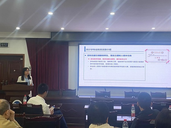随后,四川师范大学数学科学公司教工第二党支部书记唐孝分享了党建与业务深度融合的“两标两线一服务”支部工作法。唐老师给与会老师们介绍了如何将党建工作和一流课程建设、教材建设、团队队伍建设、人才培养等方面进行有机融合,有效服务师生的优秀做法。