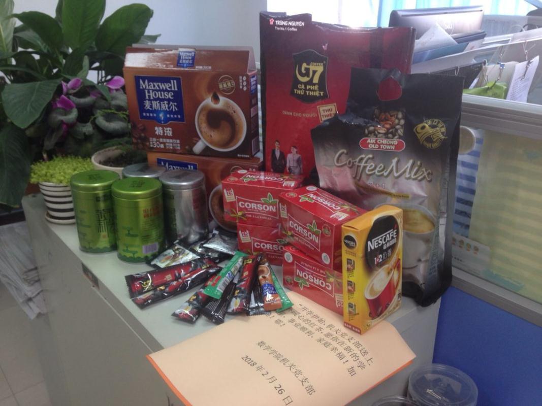 这不,支委们从书记津贴中拿出部分资金,购买了红茶和咖啡,为教师们送去了2018年的第一缕温暖的问候。