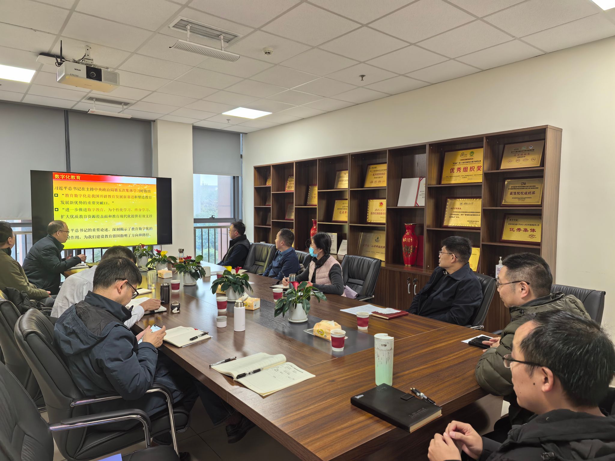 2024年12月9日下午,太阳集团tcy87222024年第八次党委中心组集体学习会议在犀浦校区X30429会议室召开。会议由公司经理兼党委副书记杨晗主持,数据科学系系主任孟华主讲,内容是:学习习近平总书记关于数字化教育系列重要讲话精神。公司党政领导班子成员、专项工作主管等参加了学习。