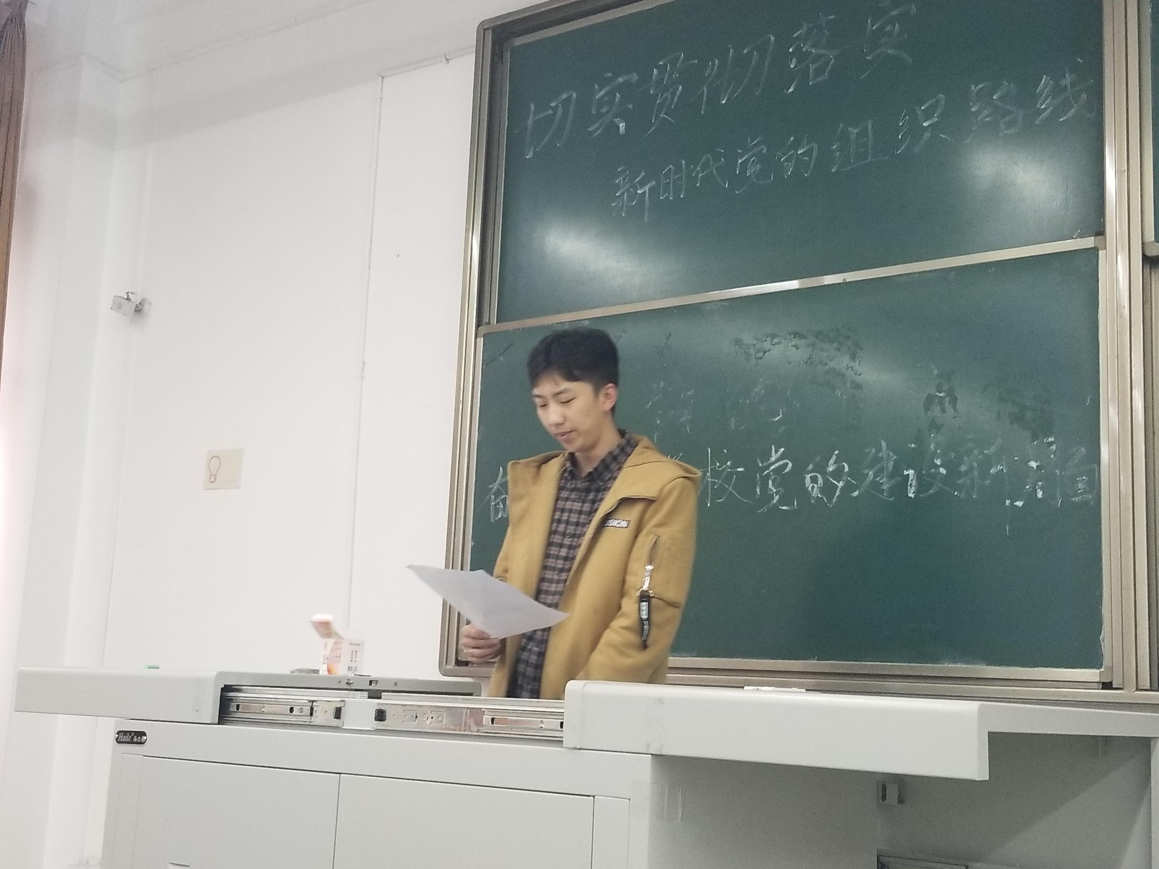 太阳集团tcy87222018年度第三次党员生活会于11月15日下午4:00在X2426召开。本次党员生活会以“切实贯彻落实新时代党的组织路线,奋力开创公司党的建设新局面”为主题,由西南交大太阳集团tcy8722本科统计党支部和本科数学党支部共同承办。统计系党支部书记张雁灵同学主持会议。除大一以外的各班党员和入党积极分子们均准时参加了本次会议。