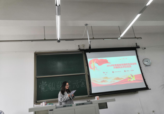首先,由宣传委员文冰梅组织观看了《全国组织工作会议》视频,该视频主要讲述了加强党的组织工作,要以组织体系建设为重点,着力培养忠诚干净担当的高素质干部。接下来由党支部书记樊佳幸向所有党员同志对2018年度后半年的主要工作和所有组织参与的活动做了一个详细的总结,对其中各项活动中的做得好的同志进行了表扬,也对其中不足的地方提出了意见,希望能吸取教训在以后的工作活动中能完成的更好,也对党员同志提出了进一步的要求。最后,进行党员评议,由支部书记对所有参与同志的基本情况进行了一个简短的介绍,然后让大家进行讨论,对参与评选党员的作为进行一个评比,最后通过大家的一致投票选举,选出其中的优秀党员。