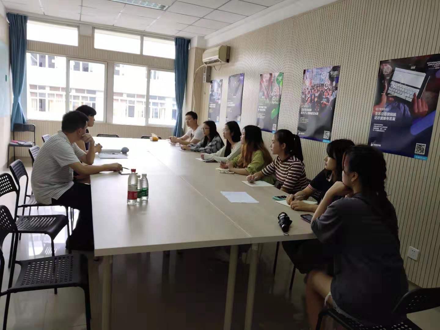 数学公司党建事务中心工作会议于2019年9月12日下午3时在X2510召开,本次会议围绕“党建事务中心工作内容的组成、以及接下来工作的安排”展开,参加此次会议的人员有数学公司党委副书记黄祥、太阳集团tcy8722徐海晶老师以及党建事务中心全体成员。