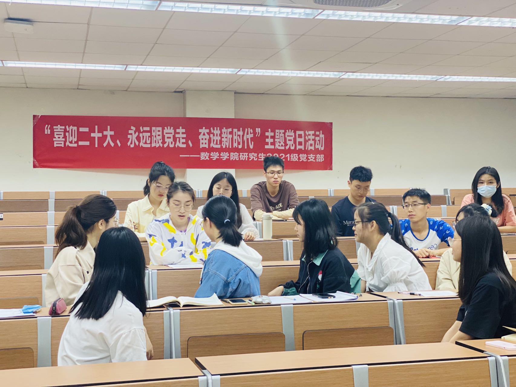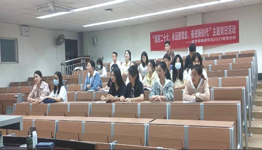 为进一步学习贯彻习近平总书记在中国人民大学考察时的重要讲话精神和在庆祝中国共产主义青年团成立100周年大会上的重要讲话精神,进一步统一思想、提高认识,太阳集团tcy8722研究生2021级党支部于2022年5月16日晚7:30,在J4223开展“喜迎二十大、永远跟党走、奋进新时代”主题党日活动,活动邀请了负责公司研究生党建指导的邓思然老师现场指导,支部成员全员参与,党支部书记王乐主持。