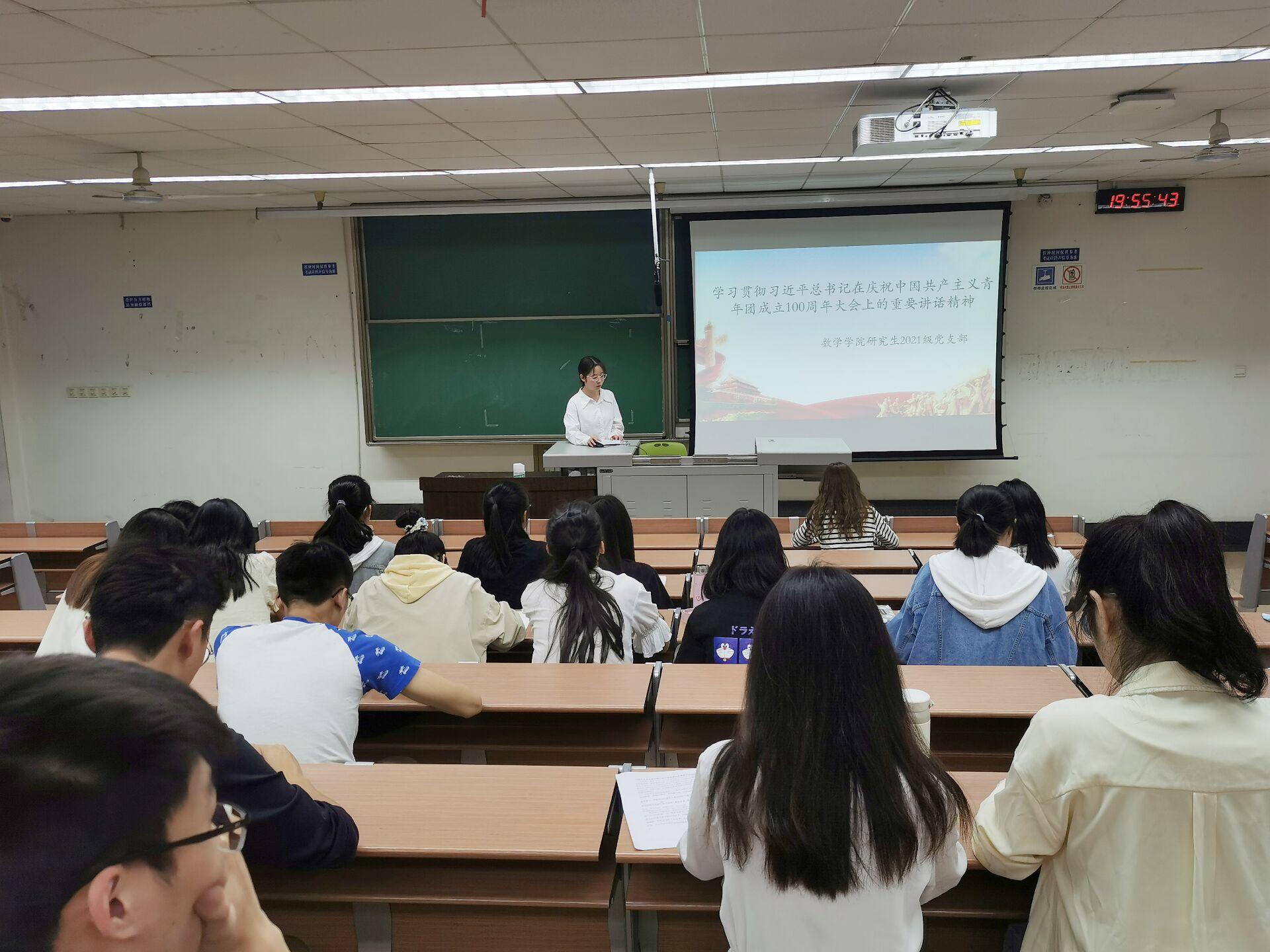 首先,支部组织委员李冉领学习近平总书记在中国人民大学考察时的重要讲话精神。支部全体成员在李冉同志的带领下结合PPT和视频内容,对习近平总书记重要讲话的主要内容进行深入学习。李冉同志结合自身专业,就自己的学习感悟与同学们做了分享交流,她讲道:“作为一名数学专业的研究生,我们要打牢学科功底,专注基础研究,敢于把“冷板凳”坐热,真正把论文写在中国大地上,把学问做到人民心坎里。”