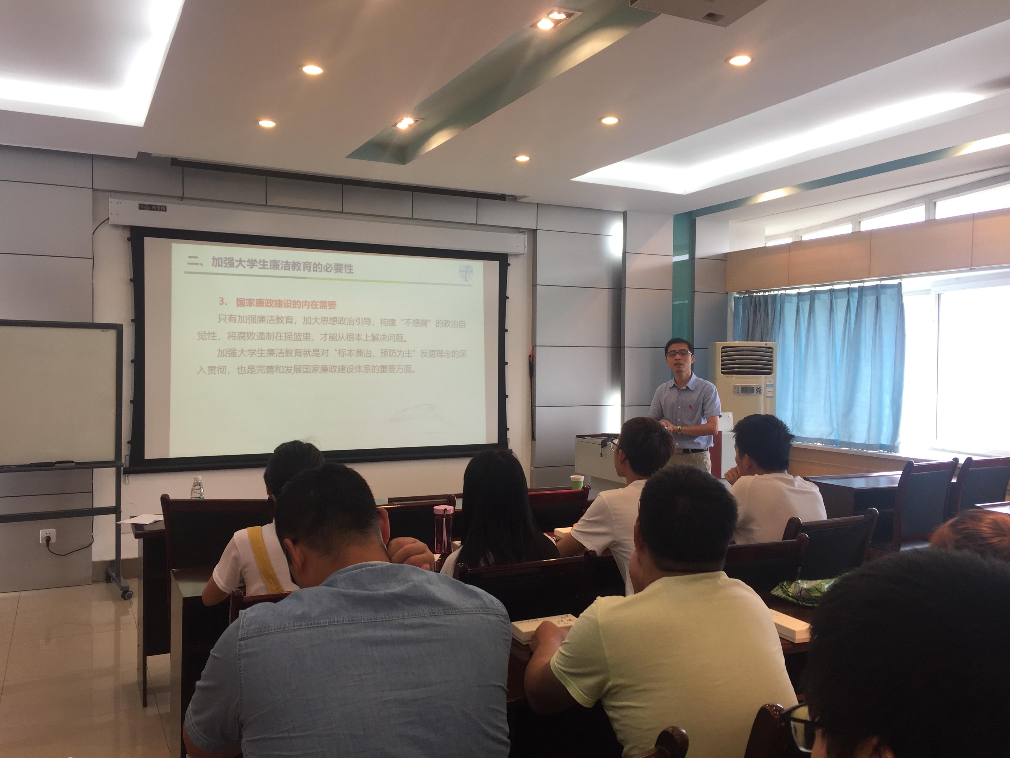 6月19日下午16:00,大学最后一课毕业班党员学习廉洁会议在X2511顺利召开,会议由数学公司党委副书记兼纪委书记杨育鸿老师主讲,员工党建指导老师卢怡帆老师主持,本研全体毕业生党员参加了此次会议。