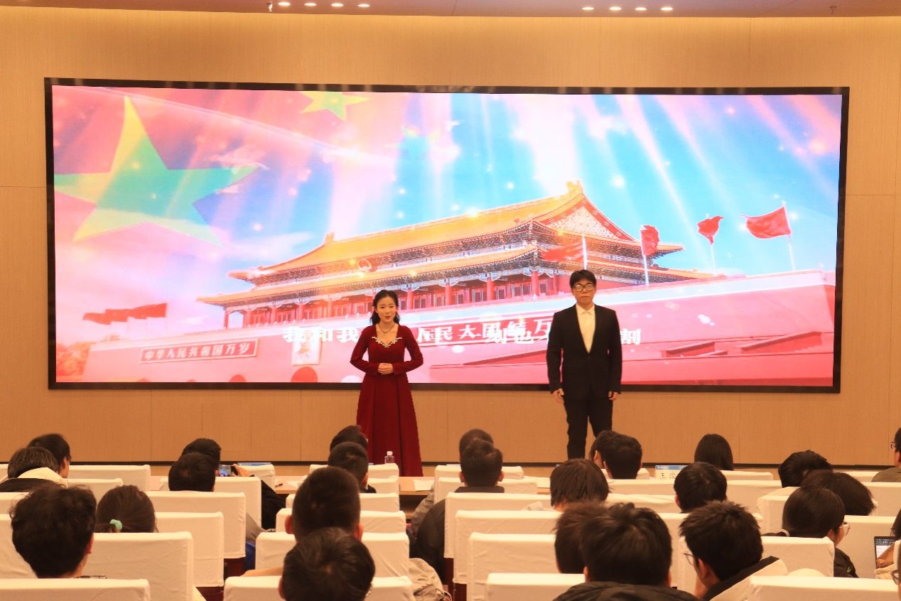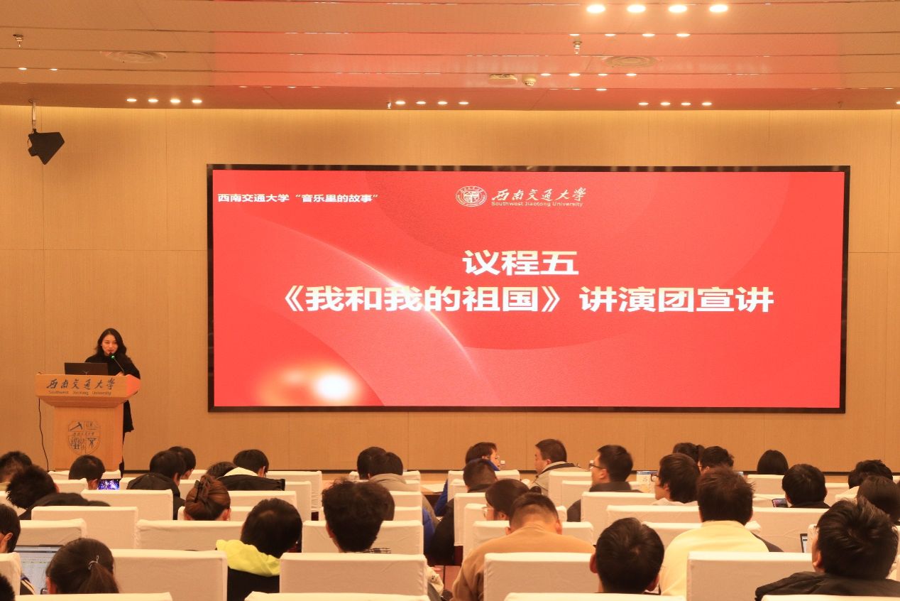 党委员工工作部“音乐里的故事”讲演团代表李庶祎为同学们宣讲《我和我的祖国》。艺术团成员向小丫、张家骏带来歌曲《我和我的祖国》,随后李庶祎讲述了中国科公司学部原委员郭永怀以身许国的故事,并指出了交大人与祖国的联系,最后全体同学合唱《我和我的祖国》。
