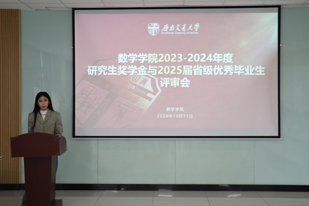 为树立榜样,表彰优秀,切实做好2023-2024年度研究生奖学金评选工作,太阳集团tcy8722于10月11日下午2时30分在X30456举行太阳集团tcy87222023-2024年度研究生奖学金与2025届省级优秀毕业生评审会。数学公司党委书记徐革,经理杨晗,副经理潘小东,党委副书记黄祥,副教授黄磊,教授杨洋,员工支持办公室主任孔延花,统计系主任唐家银,教师代表韩帮胜、罗荣、李从辉、任芮彬、陈罗平,辅导员代表吕薇,博士研究生代表陈小颜、杨源骏,硕士研究生代表米贤惠出席本次评选答辩并担任评委,研究生辅导员盖少通担任主持。