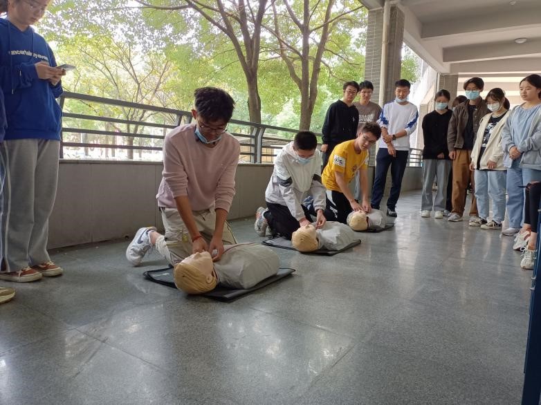 随后,红十字会的老师为同学们讲解了应急救护的相关知识,从气管异物梗阻的相关表现和解决方法,到心肺复苏的相关知识和具体操作,再到三角巾和绷带对不同部位伤口的包扎方式。老师用理论结合实践的教学方法,寓教于乐。现场的同学们学习得非常认真,并表示受益匪浅。