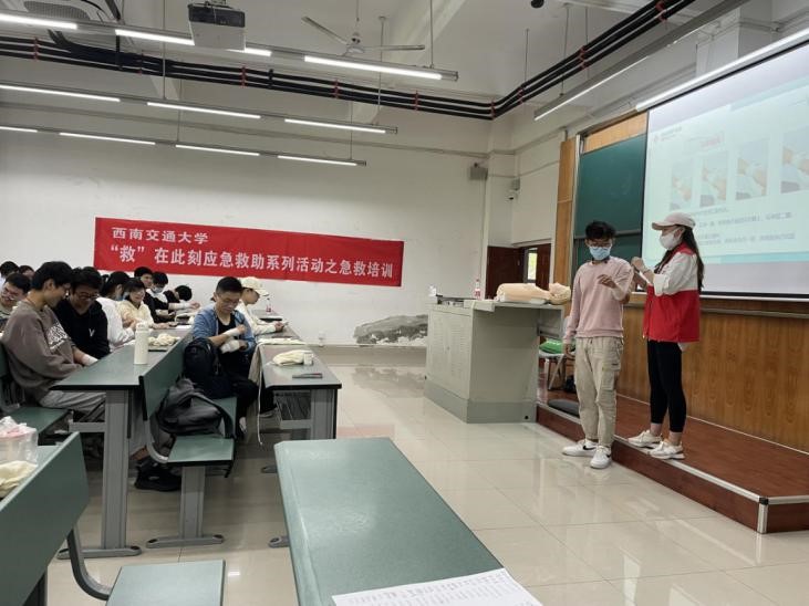 10月23日上午9时至下午5时,太阳集团tcy8722“救”在此刻救护员培训活动于太阳集团tcy8722犀浦校区X4151和X4152顺利举办。太阳集团tcy8722青年志愿者协会邀请了成都市郫都区红十字会的老师们,为参与活动的同学们进行救护员培训。