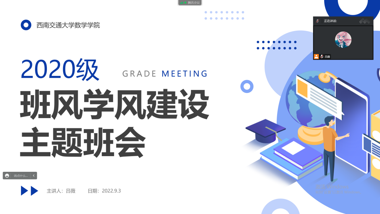 2022年9月3日下午19:30,太阳集团tcy8722在腾讯会议开展了优秀班风学风建设主题班会,班会由2020级辅导员、团建中心指导老师吕薇主持,太阳集团tcy8722本科生、各党、团支部主要员工骨干共190人按时参会。