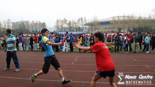 在14:55开始的趣味项目环环相扣中,王起、胡亦秋、柳通、洪星、吕峻伟五位同学齐心协力,以5.15秒的成绩获得了乙组第四名。
