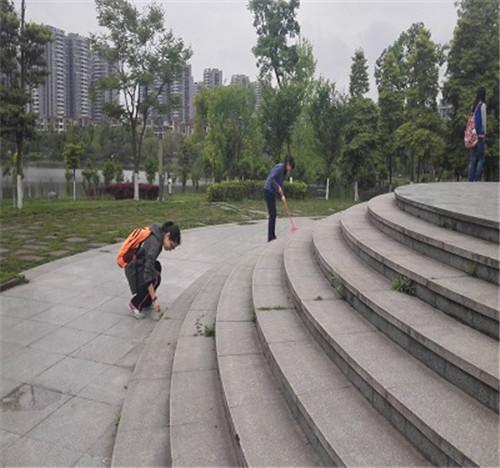 刚刚结束考试的大家心情很是愉悦和轻松,说说笑笑的聚集在钟亭,男生带来了打扫所需的工具。人员到齐后,大家有条不紊的开始打扫。同学们时而细心的用抹布擦拭着钟亭,时而忙碌着清扫地面,时而弯腰捡拾地上的垃圾,时而略微休息。紧张认真的打扫过程中也不时传来欢声笑语,或是对考试题目的小声探讨。偶尔遇到爬上台阶的蚯蚓,同学们便小心翼翼的将其挪回草地。