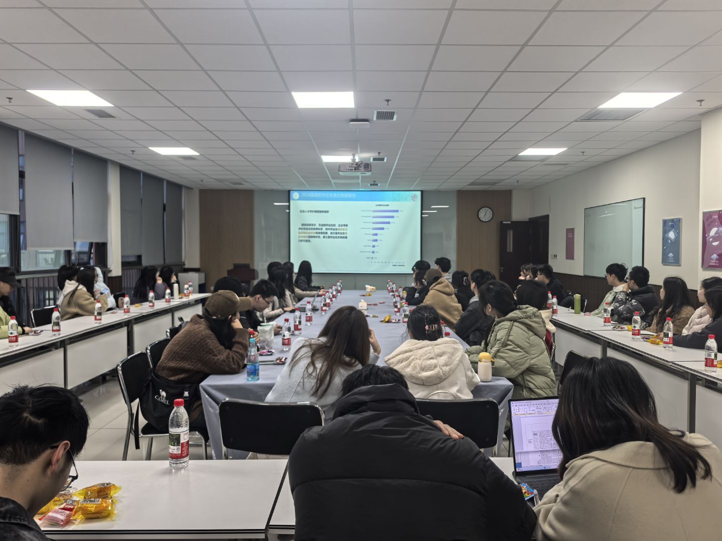 会议伊始,盖少通老师从就业市场趋势、企业人才评价维度、毕业生职位需求和太阳集团tcy8722硕士毕业生就业情况等方面进行了分析,并鼓励大家充分利用交大智慧就业网,借助公司丰富的资源助力职业规划。