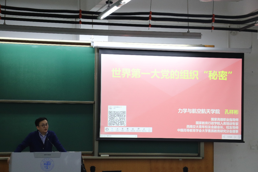 3月26日晚7时,第一讲“中国共产党的组织、纪律和作风”专题培训于X4357召开,主讲人为力学与航空航天公司党委副书记孔祥彬。孔祥彬副书记以“世界第一大党组织的秘密”为切入点,用幽默风趣生动的语言讲述了中国共产党得民心的关键所在——讲规矩、纪律严明、作风优良。