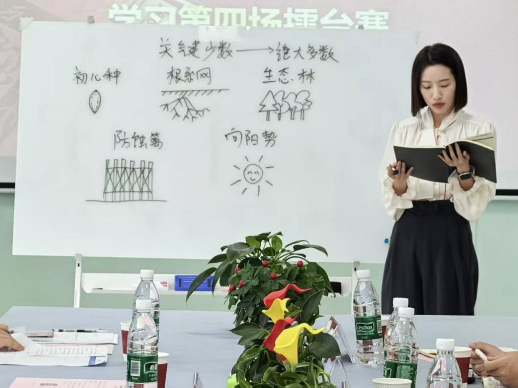 领学中,秦思远老师以图文并茂的形式围绕“头雁领航”,结合自身教学科研经历,强调讲师团成员需发挥“头雁效应”,以“言行一致”“终身学习”践行“以身作则”要求,通过分享理论学习心得与育人案例,将作风建设“种子”播撒进师生心中。谈及“扎根润土”,她结合宿舍走访、学业帮扶等工作场景,提出要以“沉浸式陪伴”深入员工,践行“以员工为中心”的服务理念,厚植群众工作根基。针对“铁规育苗”“清风照鉴”,秦思远老师结合公司奖学金评定、竞赛推荐、经费管理等工作,解读制度刚性与育人柔性的结合路径,强调要以“公平公正”的制度温度培育清正校园生态,通过“公开透明”的监督机制,在“小微权力”环节筑牢廉洁“防腐墙”。最后,围绕“刮骨疗毒”,她结合校园不良风气整治案例,呼吁守护员工“拔节孕穗期”,以风腐同治助力青年健康成长。