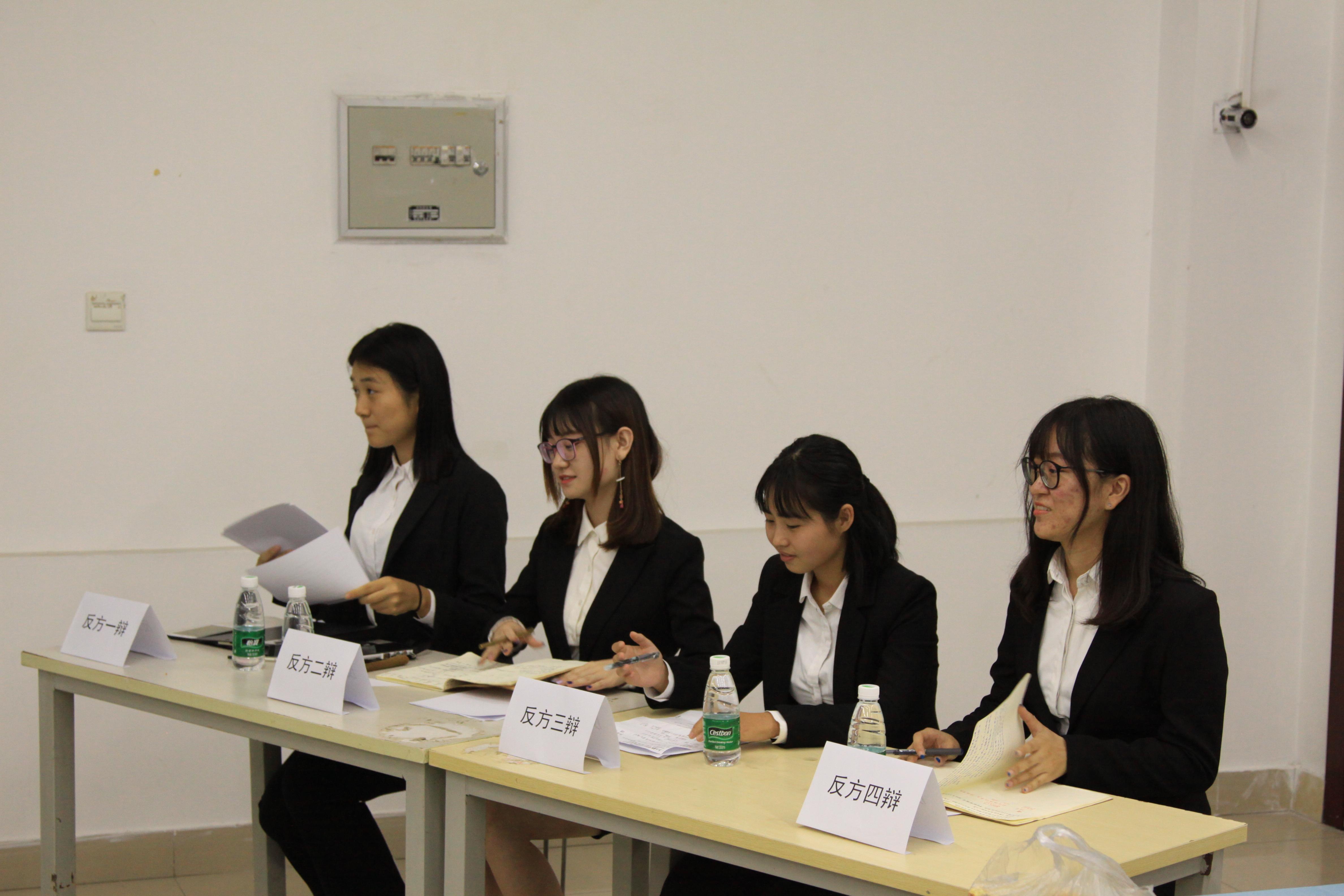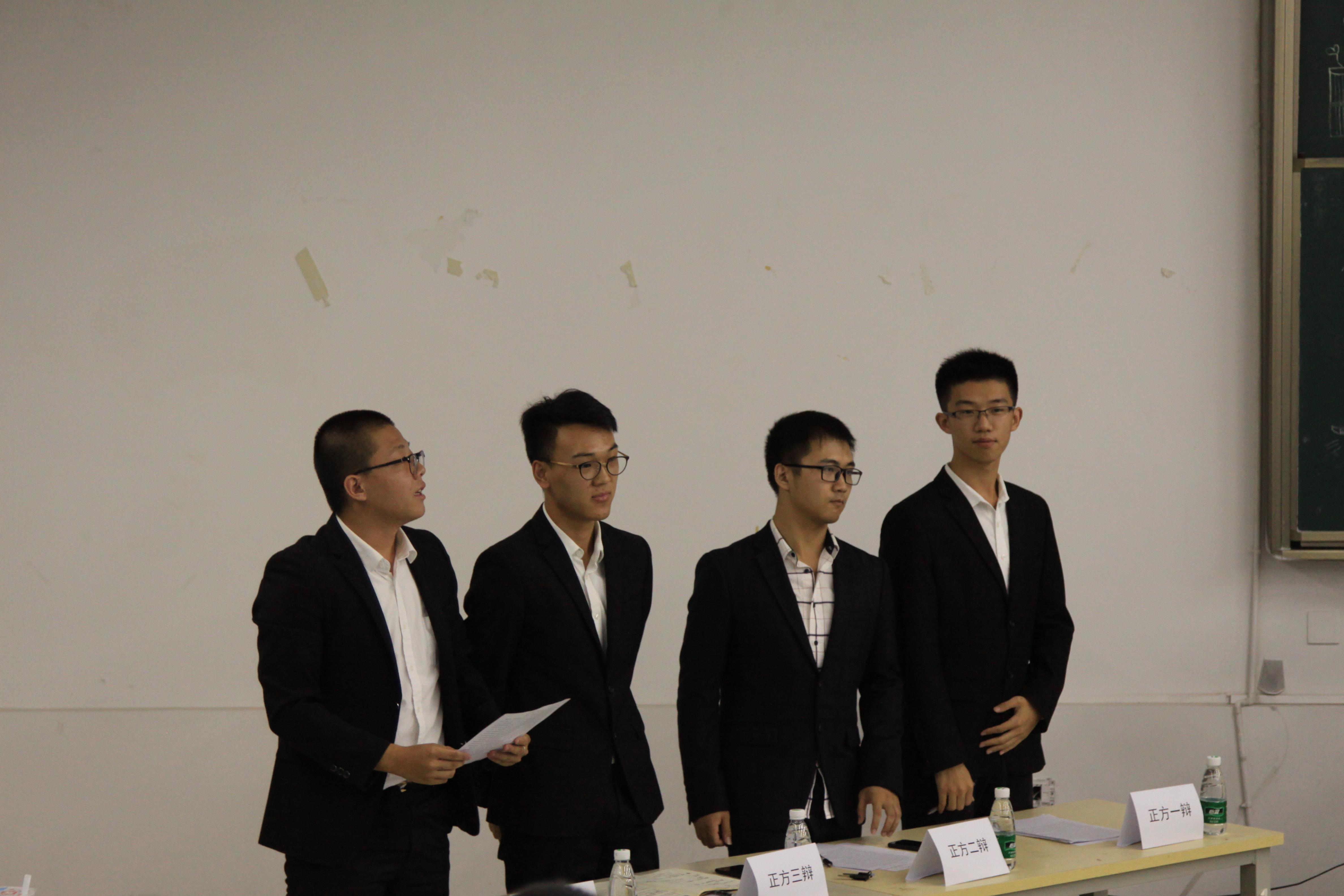 接着,精彩的表演赛拉开帷幕。双方的辩题是“男性还是女性更需要关怀”。介绍了双方辩手之后,辩论赛正式开始。双方经历了一辩立论陈词、四辩的攻辩、正反一辩申论等环节以及最精彩的二辩对辩和自由辩论,双方分别拿出各种有信服力的统计数据和社会焦点事件来表明己方观点,同时也不乏诙谐幽默的陈词。一番唇枪舌剑、字句斟酌的较量,每次陈述都攻防有道、令人信服。有三位观众对辩手分别提问,也展示了观众们的专注与思考。最后,16级辩论队队长向志智为本次宣讲做了总结。她赞扬了辩论队员的逻辑与思维,也表达了对于大家加入辩论队的欢迎。