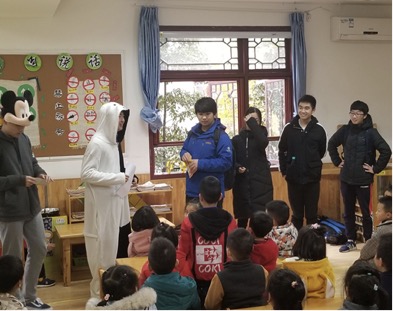 2018年11月28日下午一点二十,2018级数学与应用数学一班参与交通公益活动的同学们在公司南门集中,于下午两点二十进入郫县安靖三合幼儿园。