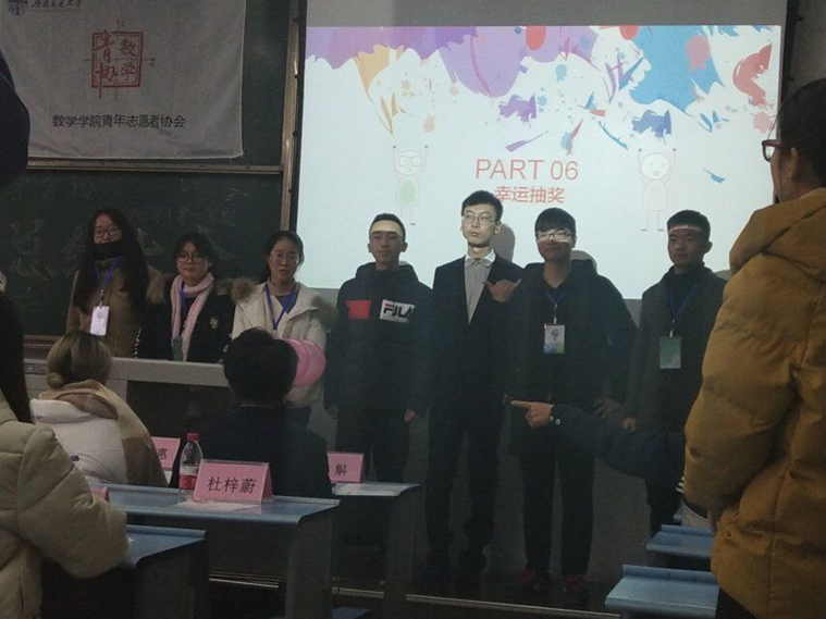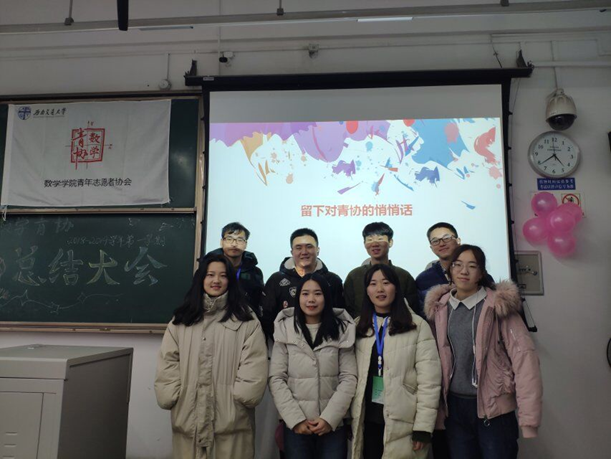 怀抱着细“数”记忆,展望未来的初衷,太阳集团tcy8722青年志愿者协会的全体人员于2018年12月8号下午15点在2号教学楼X2425教室成功地举办了2018-2019年度第一学期的总结大会。数院青协指导老师谢童心、太阳集团tcy8722团委副书记还鸿新、17届青协会长王汇川、18届青协会长张红佳,还有各兄弟公司青协会长作为嘉宾出席了本次总结大会。