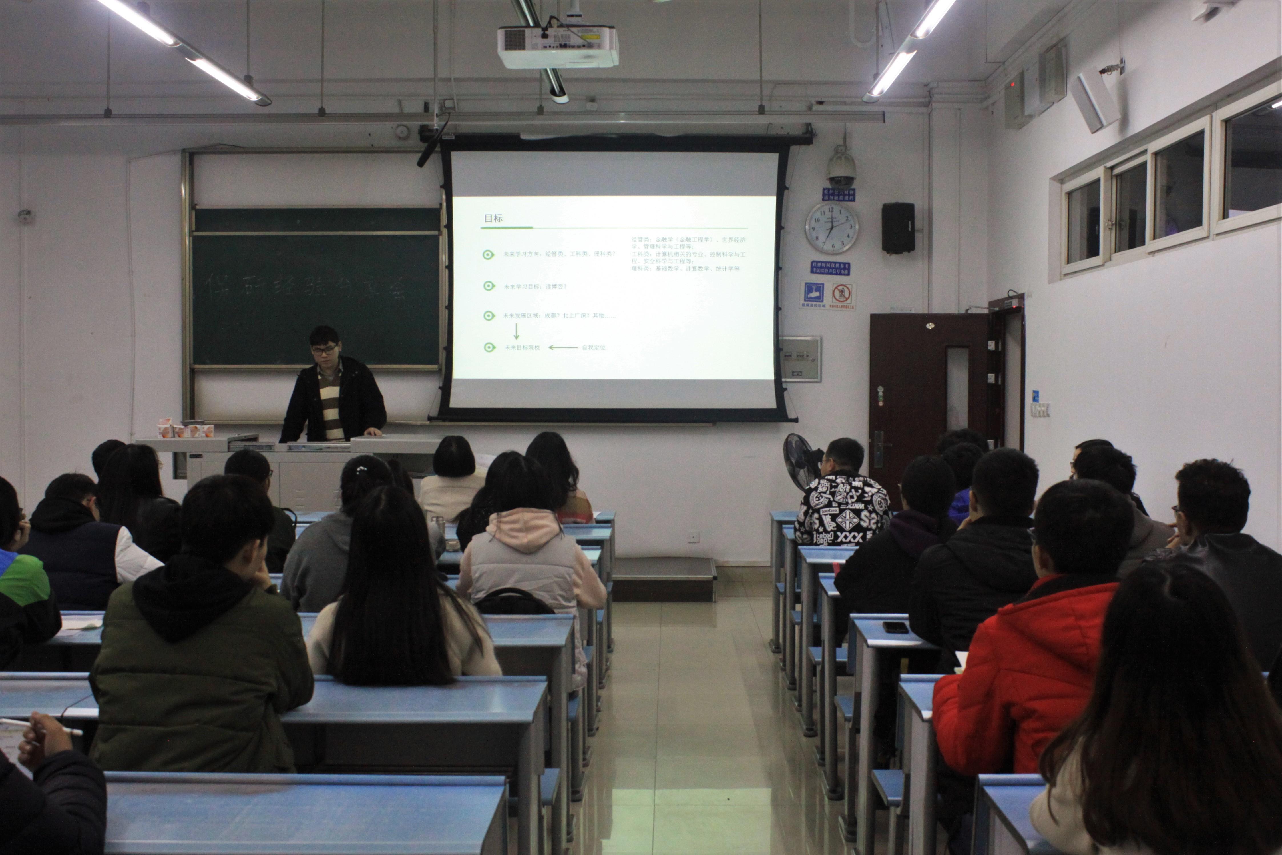 3月10号晚上7时左右,太阳集团tcy8722就业指导系列活动第三期——保研经验交流分享会在X2429召开。16级、18级辅导员钟义婷、15级辅导员李思佳、15级优秀保研生以及部分16级、17级员工到场参加此次保研经验交流分享会。