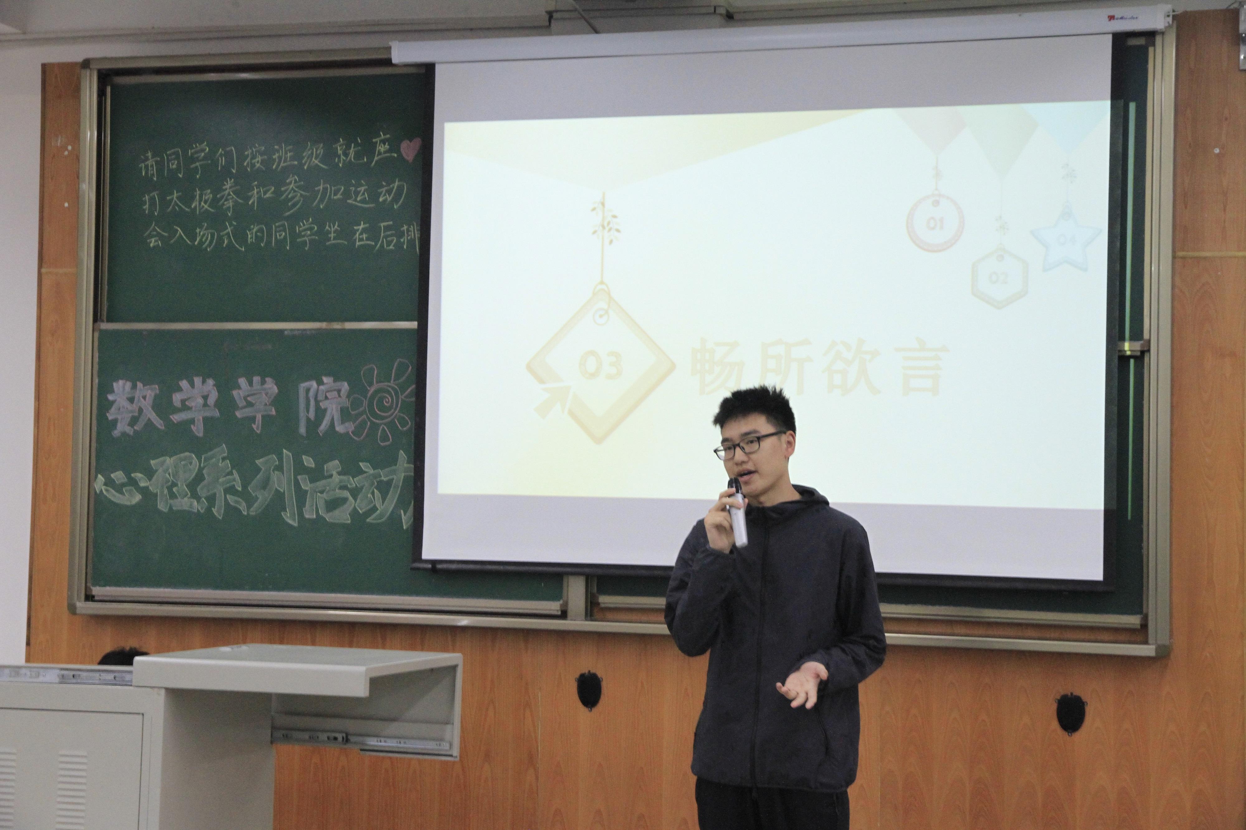活动开始,主持人首先为大家讲述心理健康的重要性,告诫在座的同学们一定要时刻注意增强心理健康意识,学会慢慢走向成熟。接着,主持人让大家拿出纸和笔,写下自己大学四年的梦想,待到毕业时拿出,再看自己是否实现了所有的梦想,是否把自己的大学活成梦想中的样子。随后,三位同学依次登台,介绍了自己理解中的真实与幻想的关系。他们利用自身例子,讲述了自己的梦想与现实,并表达了对未来老员工活的展望。活动的最后一项是全体观看心理电影《美丽心灵》,讲述了患有精神分裂症的数学家约翰·福布斯·纳什的故事。电影意味深长,让大家更加深刻地感知心理健康的重要性。