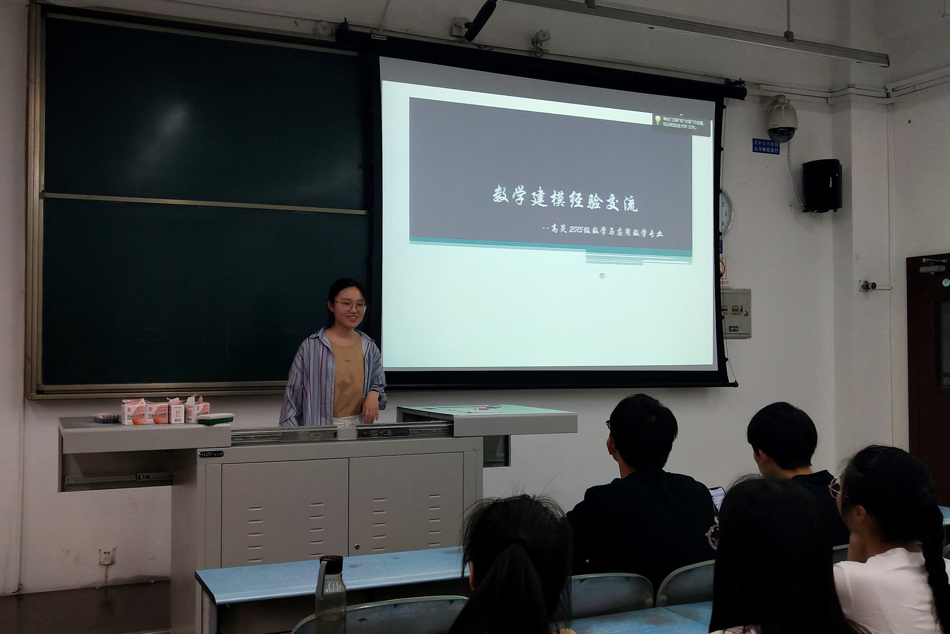 高炅同学曾获2017年全国老员工数学建模竞赛一等奖,她向大家推荐了一些有用的建模书籍和建模法宝,并以2017年国赛建模A题的例子具体给同学讲解了问题解决的步骤。