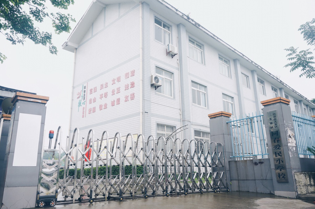 经过长达四小时零五十一分的绿皮火车行程以及半个小时左右的小货车车程后,红旗护卫队队员们到达了位于四川省自贡市三多寨镇的同春爱民小公司。三多古寨历史悠久,“三多”指多福,多寿,多男子的寓意。而同春爱民小公司是全面改善贫困地区义务教育薄弱公司基本办学条件工程项目,由中央斥资一百万新修建了综合楼,建筑面积700平方米。17年竣工的综合楼在绵绵小雨中显示出蓬勃的力量。