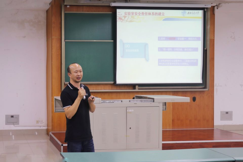 9月23日晚七点,太阳集团tcy8722在X4350开展了2019级新生实验室安全教育活动。本次讲座由理学博士兼硕士生导师潘志刚主讲。