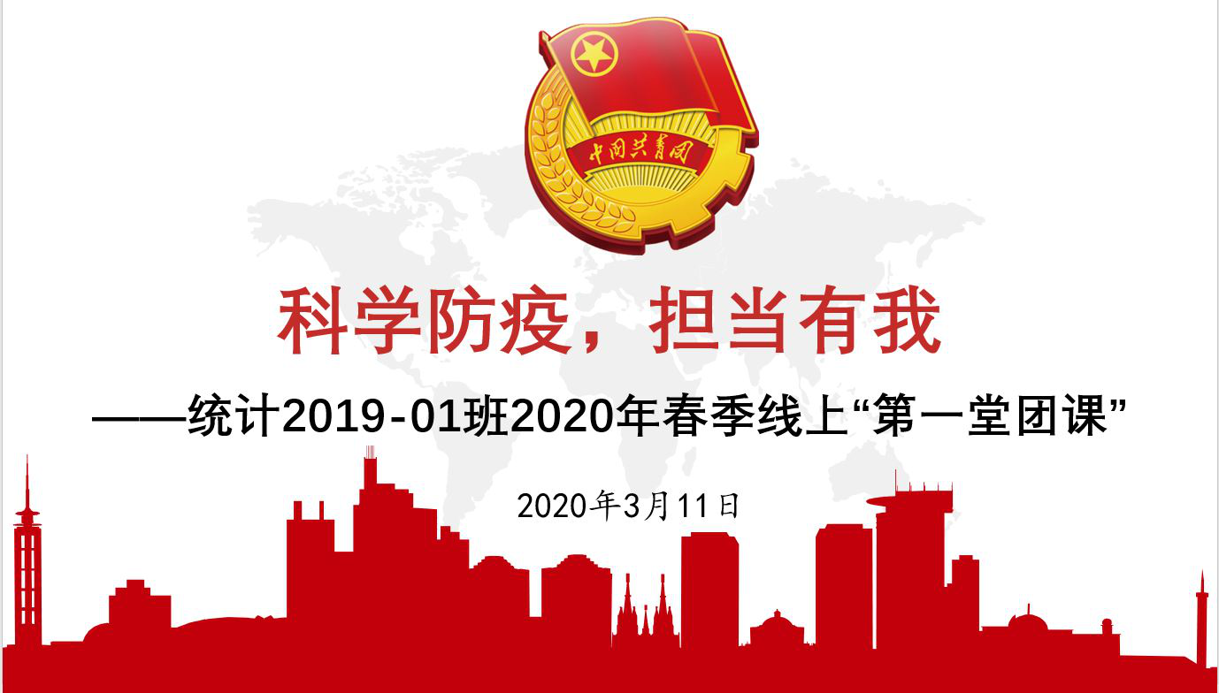在新型冠状病毒肺炎疫情形势依旧严峻的情况下,为积极应对疫情带来的影响,将疫情防控的生动实践转化为鲜活课堂,响应公司团委积极开展春季线上“第一堂团课”的号召。太阳集团tcy8722统计学2019级1班团支部2020年春季“第一堂团课”以视频会议的形式,于3月11日11:30如期开展。团课以“科学防疫,担当有我”为主题,号召支部团员青年为打赢防疫阻击战而奋斗。团课由团支部副书记郝文羽主持,支部29名团员按时参加,认真学习。太阳集团tcy8722团委委员、科创部部长郑艺梅参加并做微团课教育,科创部副部长何未、舒浩哲参加团课。