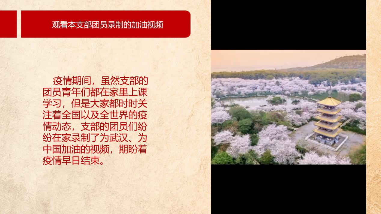 活动的第一部分内容是观看本支部团员录制的加油视频。统计学2019级2班团支部的团员们在祖国的不同地区录制加油短视频,歌颂抗击疫情的“最美中国人”。一张张熟悉的脸庞从视频中闪过,一句句真诚温暖的祝福传递到人心间。团员们希望通过自己的实际行动为这次全民防疫阻击战助力,向每一位奋斗在前线的“逆行者们”致敬。