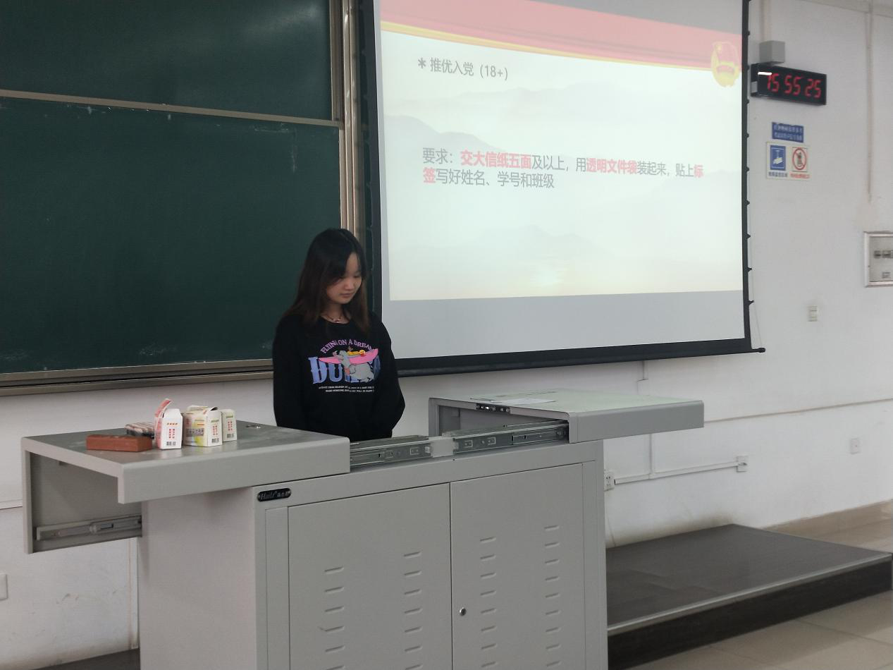 此次会议分为三部分。第一部分由数学二班团支书邱灵介绍学习基本团务。她强调各位同学应当注意第二、三课堂的学习,必须达到学时下限标准。接着,她强调了关于推优入党的注意事项,并号召各位团员积极向党组织靠拢。