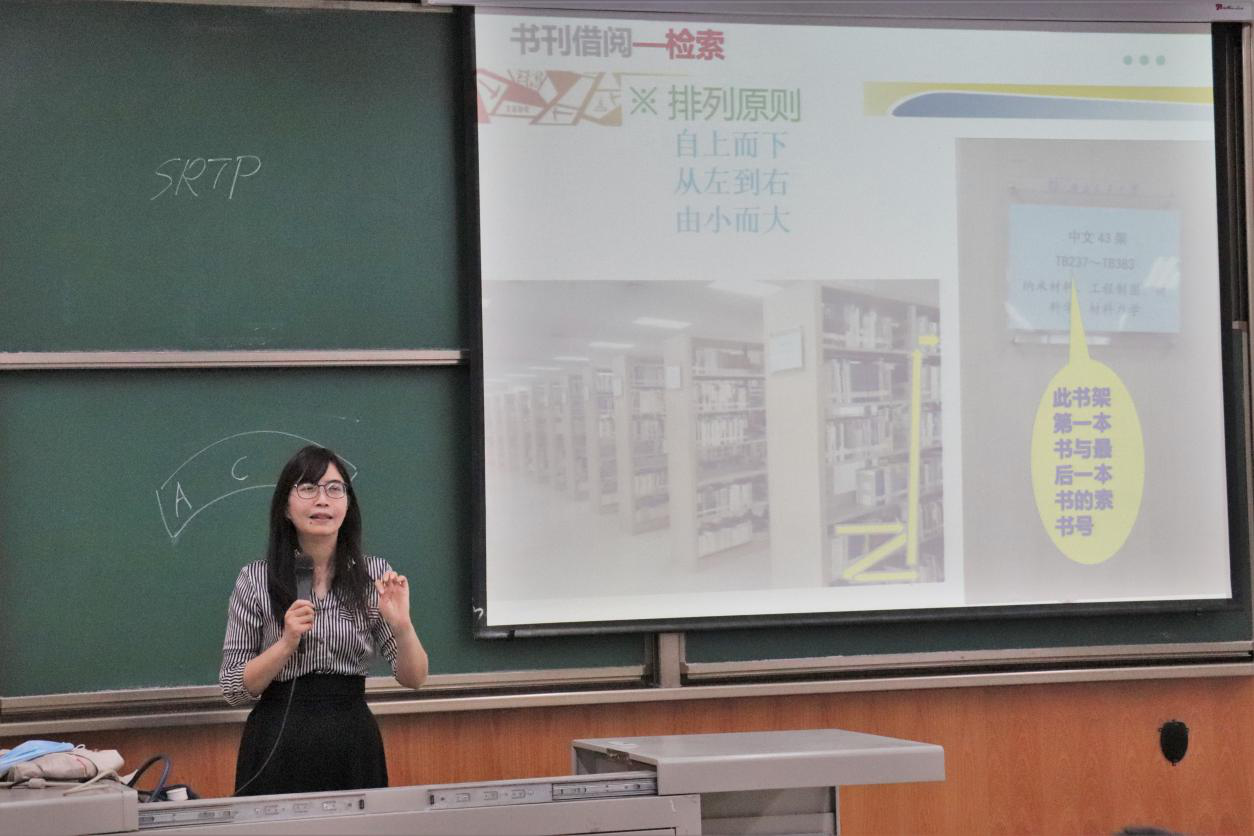 首先,陈老师以2016级“竢实扬华”奖章获得者姚铭同学的故事,引导同学们应当认识图书馆、爱上图书馆。她指出,新型高校图书馆不仅是学习中心,同样也是文化中心、交流中心和育人中心,具有着十分重要的作用。同时,陈老师也向同学们展示了图书馆举办的丰富多彩的活动、介绍了图书馆的员工组织与社团。她总结到,图书馆是全校师生最大的、最普惠的公共福利,只要想享受就绝对可以拥有,因此同学们应当多多认识图书馆。