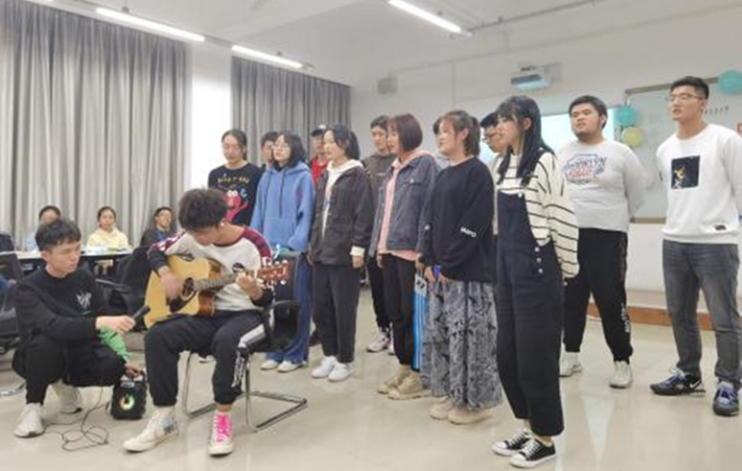 游戏结束后,办公部袁一博独唱歌曲《我要你》,低沉的男声如温柔晚风吹进大家心间。紧接其后的,是由宣传部带来的舞蹈《新宝岛》与串烧舞蹈《火红的撒日朗》、《改革春风吹满地》。欢快热情的舞蹈将现场气氛推向高潮,整齐划一的动作更是为大家带来一场视觉盛宴。最后,是活动部的合唱《追光者》,黑暗中荧光棒发出的点点微光,象征着数学青协的梦想。数学青协所有成员,都愿做那追着光的少年,努力成为温暖别人的那一束光。