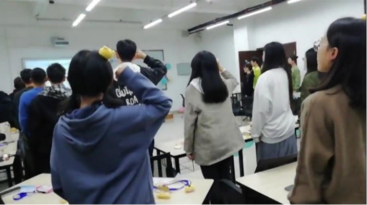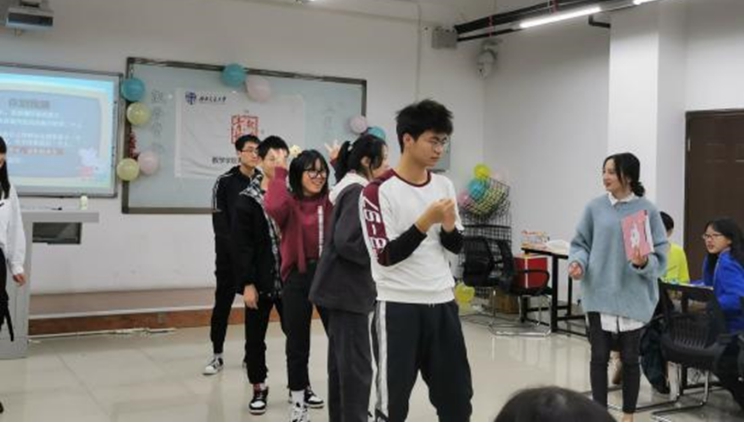 游戏环节由19级的谭湘怡和张亚主持。第一个游戏环节是“萝卜蹲”。每组派出两名同学,每位同学需在有限时间内记住其余七个人的名字。与传统萝卜蹲不同的是,参加者可以指定下一位同学的动作,比如跳、转、劈叉等。这一改变使得游戏更具挑战性,同时在游戏过程中拉近不同部门成员间的距离。