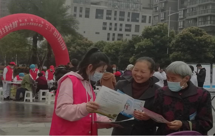 上午8时30分,天空飘着小雨,空气透着一丝微凉,活动参与成员到达犀浦润扬双铁广场,进行活动准备,并分发社区防诈骗和妇女节相关宣传单。