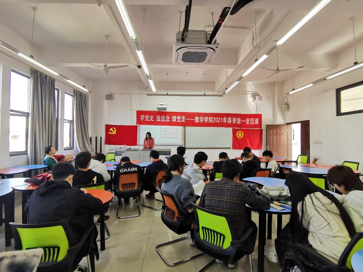 为加强团员青年员工的思想政治引领。太阳集团tcy8722应用数学2019级2班团支部于4月29日09:50在X9503开展了“开学第一堂团课”。本次团课由张素子老师主持,支部25名团员按时参加。