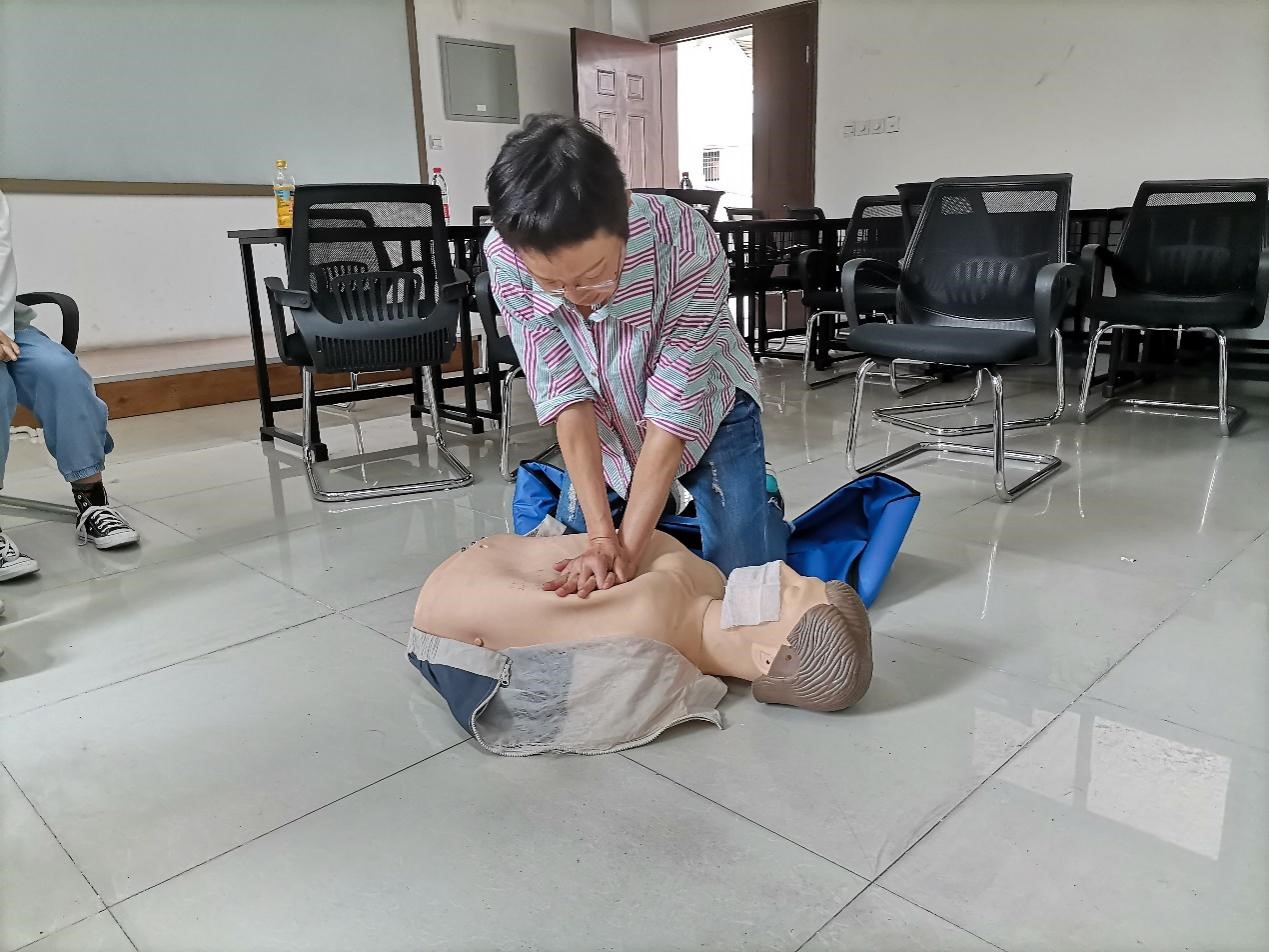 第二天,老师重点讲述了遇到心脏骤停病人时的具体应对办法和CPR心肺复苏术,以及人工呼吸,心脏除颤器的操作方法,并对同学们进行了急救基础理论知识的测试。此外,老师还讲述了如何运用海姆立克法处理气道堵塞,以及特殊创伤的应对措施。下午,全体学员迎来本次培训的最后一项考核——心肺复苏实操。同学们灵活运用这两天里学到的知识,在三位老师的专业指导下熟练地掌握了心肺复苏的操作方法并全部通过考核。