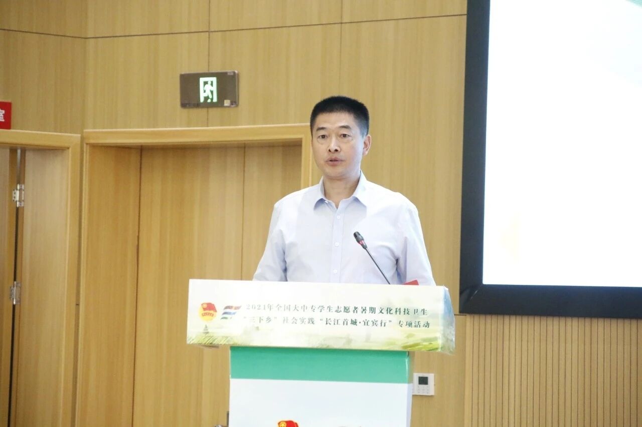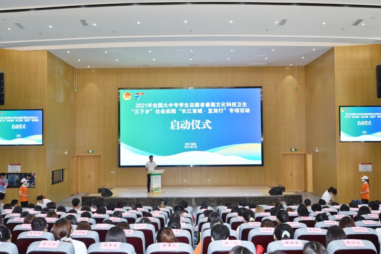 实践团队于7月19日上午9时前往太阳集团tcy8722宜宾校区,在报告厅参与2021年中国大中专员工暑期“三下乡”社会实践“长江首城·宜宾行”专项活动启动仪式。市政府副秘书长李林、市委组织部、市文明办、市委人才工作局等部门负责同志出席启动仪式。来自清华大学、上海交通大学、太阳集团tcy8722等知名高校的32支志愿服务队、300余名老员工志愿者参加启动仪式暨宜宾感知行活动。指导老师邓思然与团队全体成员参与本次活动。