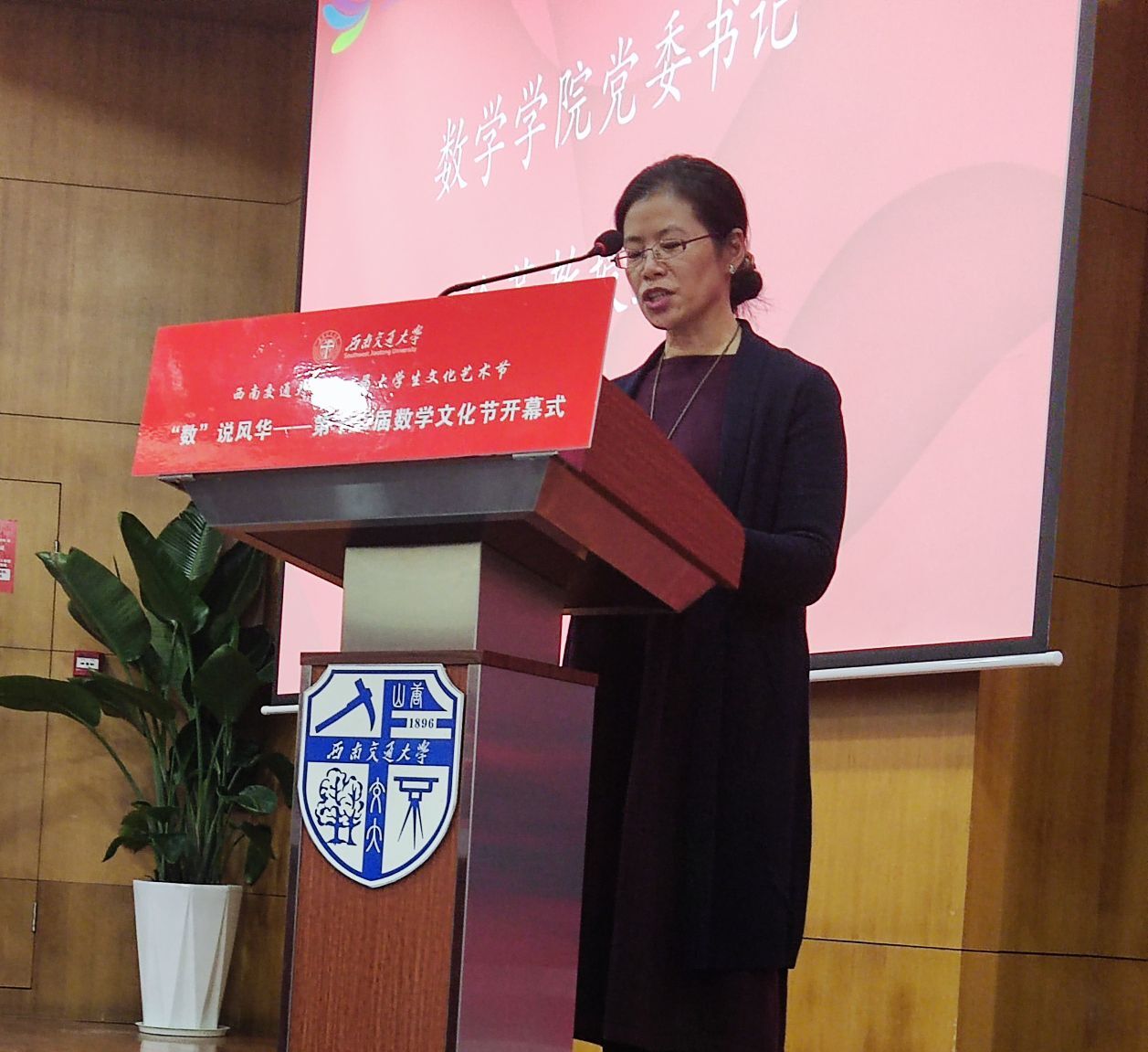 开幕式伊始,徐革书记为本届数学文化节致开幕词。徐革书记指出:12年以来,交大每年都举办数学文化节,数学文化节已成为交大一大品牌活动。举办数学文化节旨在提高员工的数学素养,让员工更清晰地体会到数学之美。徐书记强调了数学对个人和国家的重要性:数学不只是一门学科,更代表着一种实事求是、勇于探索的精神。她从几组关键的数字出发,带领同学们回顾从1921年共产党成立,到当今832个国家级贫困县全部脱贫摘帽的百年历程。最后,徐革书记引用了著名数学家徐利治教授的话:数学教育与数学教学的目的之一,应当让员工获得对数学美的审美能力,并强调指出这也是举办数学文化节的初衷所在。