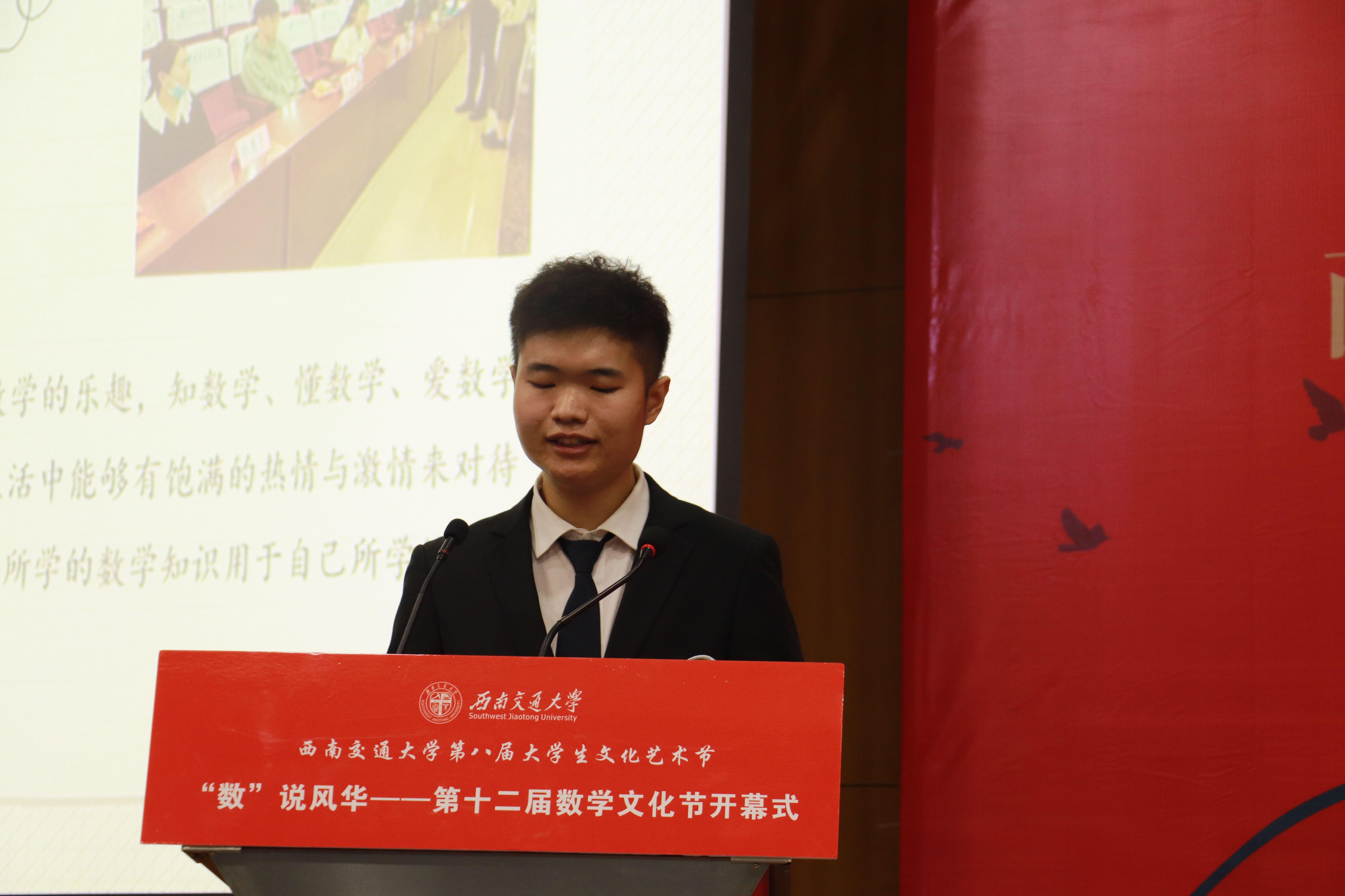 紧接着由数学公司党委书记徐革、副经理潘小东、党委副书记黄祥、老员工文化素质教育基地办公室张庆伟、太阳集团tcy8722统计系陈崇双、太阳集团tcy8722团委书记邓思然为太阳集团tcy8722第十二届数学文化节开幕。