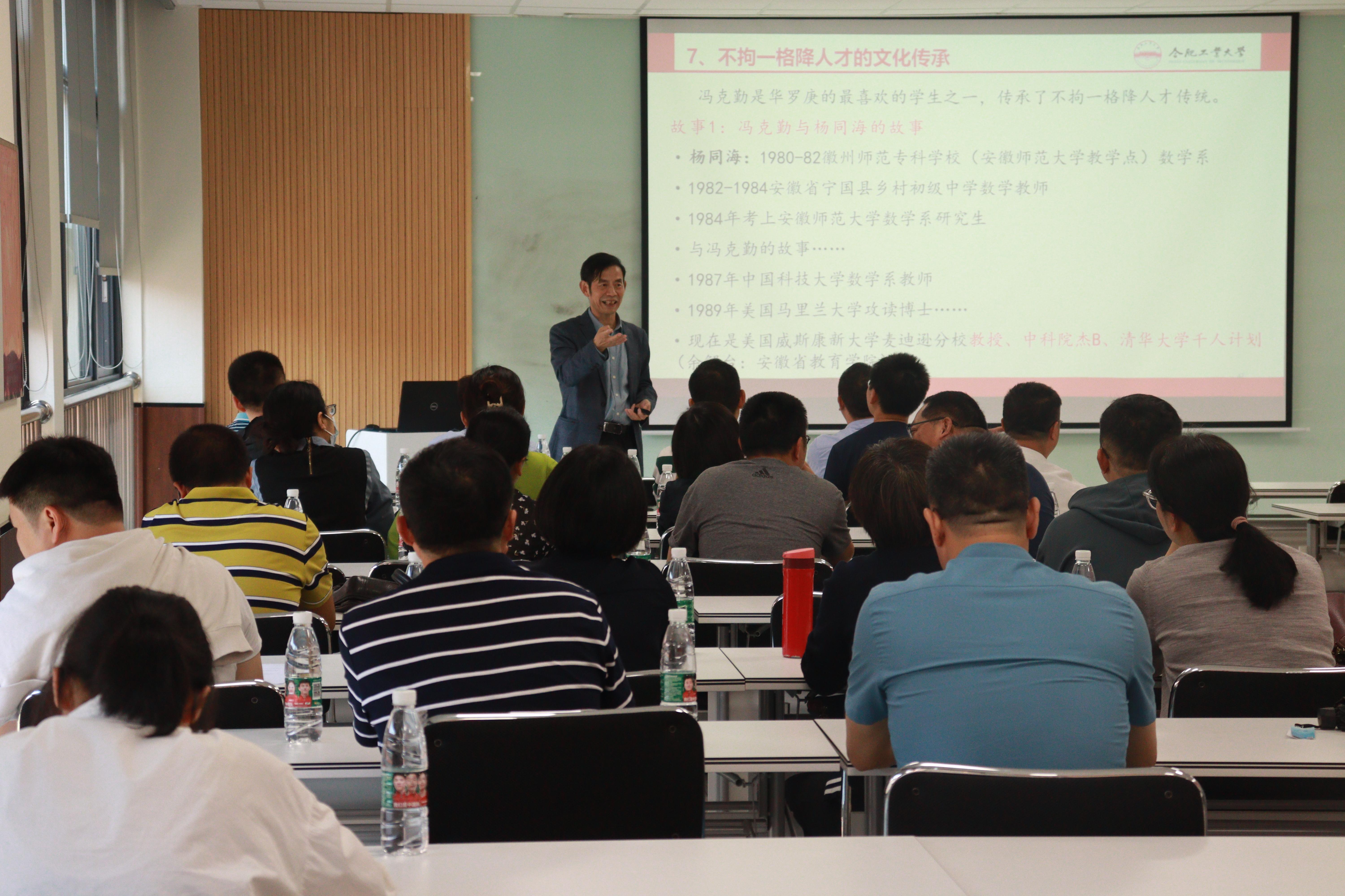 4月20日下午3时30分太阳集团tcy8722邀请到来自合肥工业大学的朱士信教授进行了一场以“数学教学改革热点与线性代数课程思政案例”为题目的报告。朱士信教授在报告中介绍了近期数学教学改革热点,并分享如何在线性代数课程中开展课程思政,通过两个具体课程思政案例来示范课程思政案例设计的思想。他通过矩阵的线性运算在万里长城图像处理中的应用,介绍了长城精神。朱教授借逆矩阵的运算,介绍华罗庚矩阵形式等式,进一步引申到熊庆来的不拘一格降人才、华罗庚的爱国情怀,以及不拘一格降人才的文化传承。