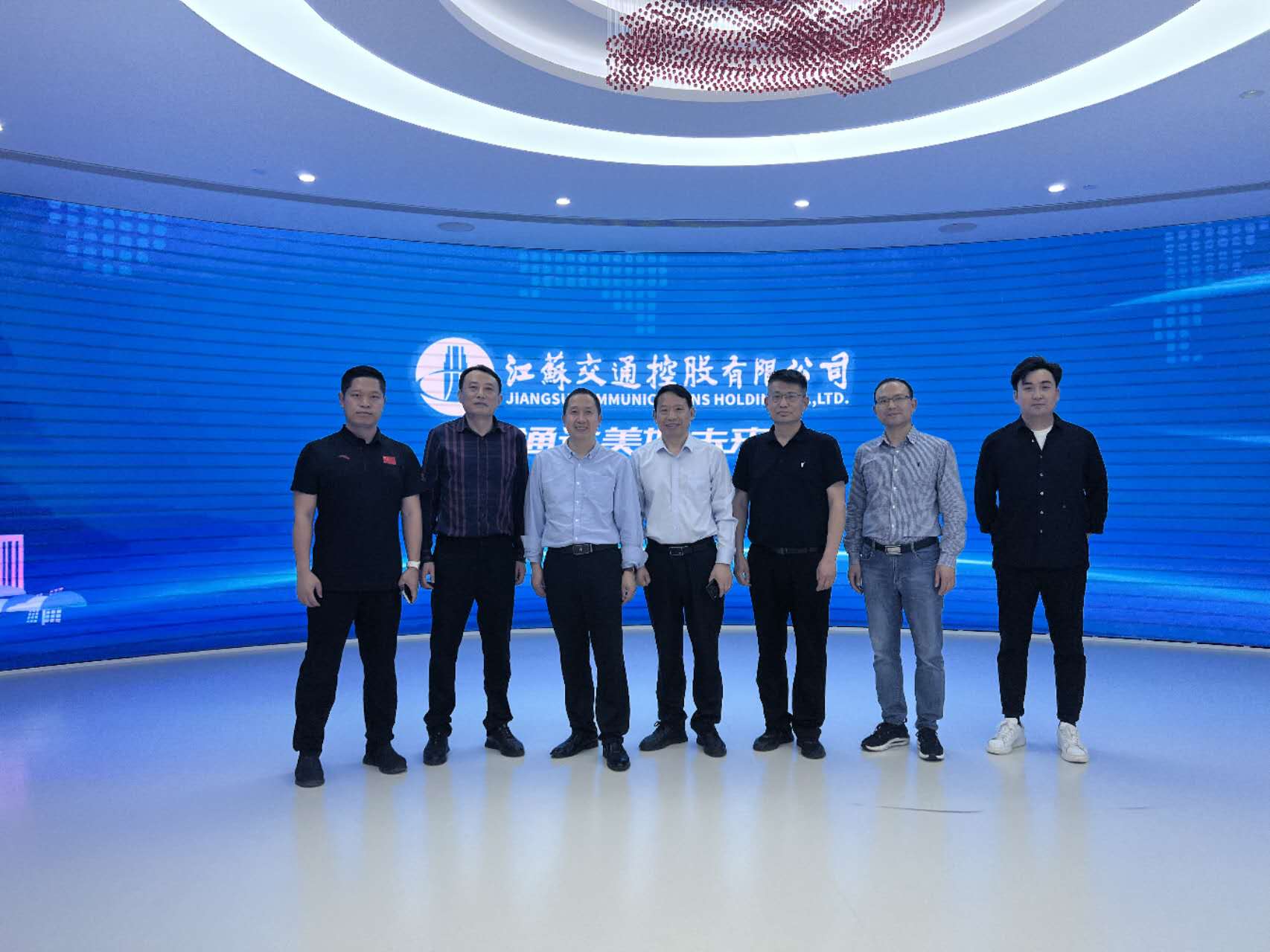 调研第一站是江苏交通控股有限公司(下称江苏交控)。杨晗经理一行的调研考察得到了江苏交控的热烈欢迎,参观了江苏交控一体化展示馆。江苏交控是国内省级交通集团中唯一一家年利润持续超百亿的企业,已形成以经营性综合大交通投融资为主体、金融和“交通+”为两翼的“一主两翼”发展格局;作为交通类大型国企,江苏交控特别注重现代高新技术的深度应用,在综合交通大数据应用场景和对人工智能技术研发应用方面,期待与公司开展战略合作。杨晗经理介绍了公司及国地实验室的概况和人才、成果与技术储备的情况,及国地实验室积极参与和服务企业、促进地方经济建设的初衷,表达了与江苏交控进行合作并积极参与数字赋能的 “产学研用”相关工作。