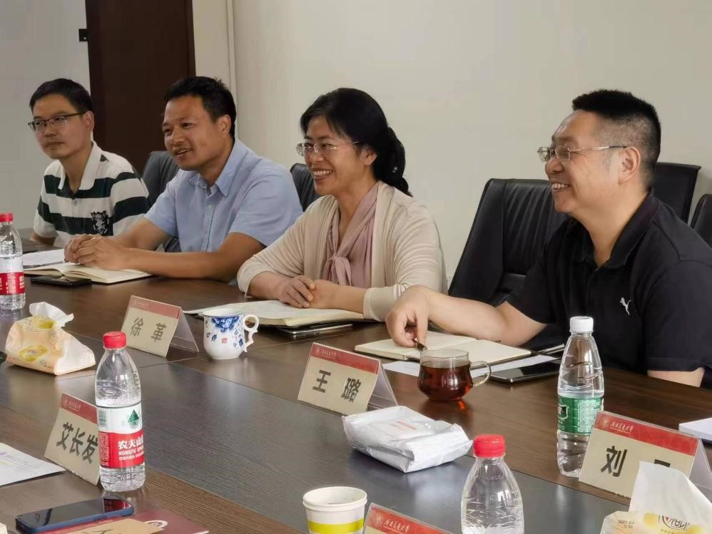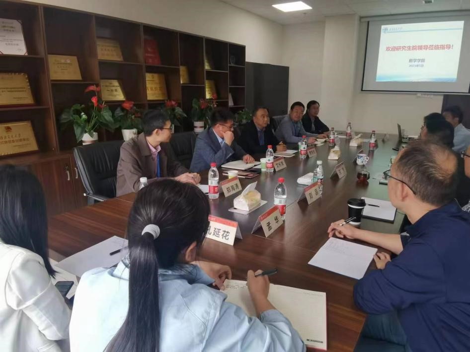 2023年5月23日上午,研究生院常务副经理周先礼、副经理艾长发、培养办主任华宝玉、专业学位办公室主任郑海涛、综合管理办公室主任陈志伟一行来到公司开展研究生公司产品调研交流工作。数学公司党委书记徐革、副经理王璐、经理助理黎定仕和杨洋、数学系系主任刘品、信息与计算科学系系主任孟华、统计系副系主任乔高秀、员工支持办公室主任孔延花参加会议。徐革书记代表公司热烈欢迎周先礼常务副经理一行的到来,并感谢研究生院对太阳集团tcy8722研究生公司产品工作的关心和支持。