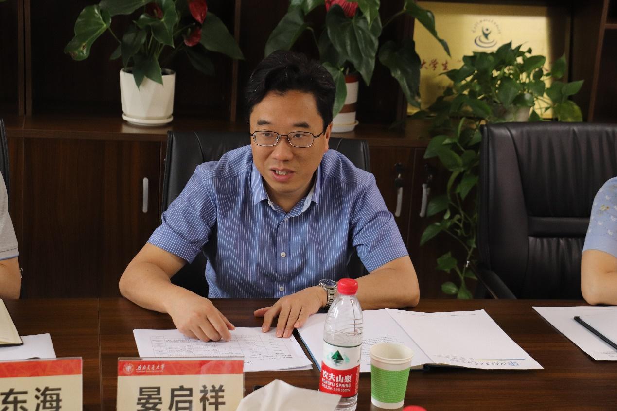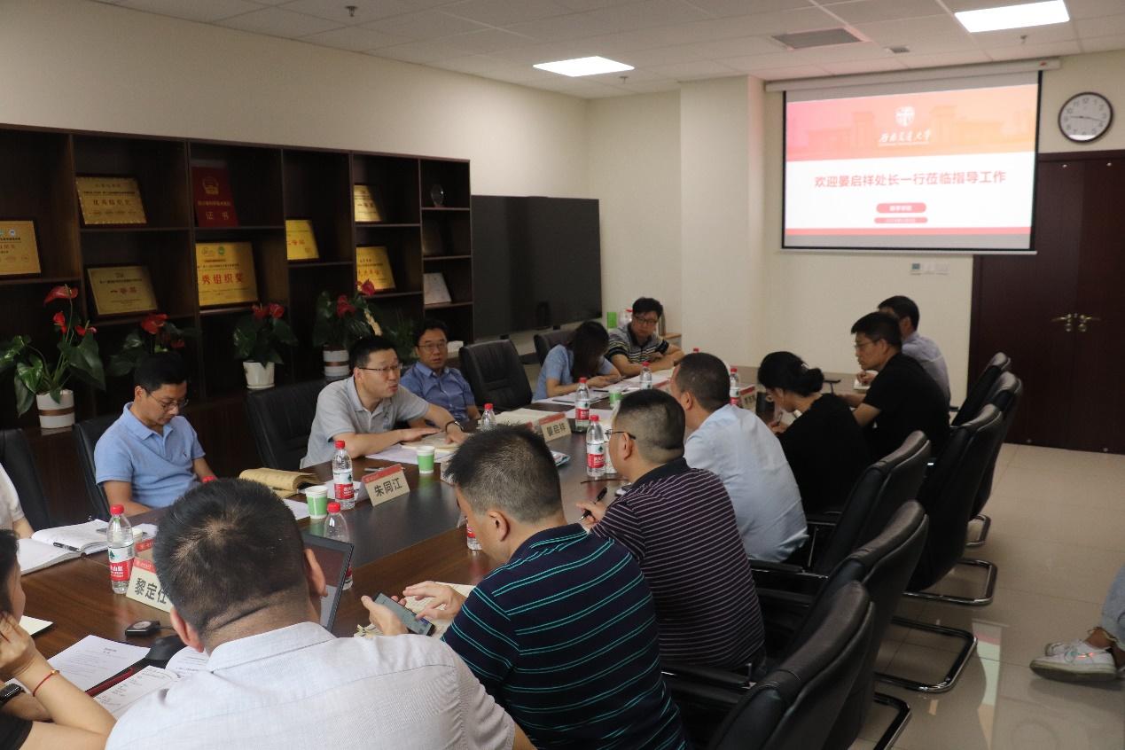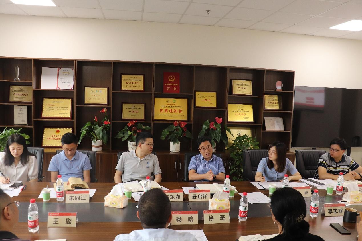 2023年6月8日上午8点30分,太阳集团tcy8722人事处处长晏启祥,副处长翟东海、朱同江、王超、张涵,人才交流培训中心主任黄甲元一行来到太阳集团tcy8722进行调研交流工作。数学公司党委书记徐革,执行经理杨晗,副经理潘小东、王璐、李志辉,党委副书记黄祥,经理助理黎定仕、杨洋,以及教师代表参加会议。