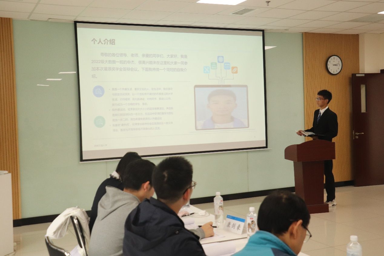 专项奖助学金评选工作严格按照公司要求,经过通知发布、个人申请、班级民主评议、学工组资格审查等环节,推选各类奖学金的候选人进入答辩环节。