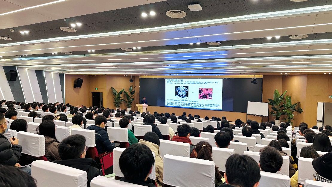 田野院士以图文并茂的方式从阿基米德的群牛问题出发,介绍由费马、欧拉、拉格朗日和高斯开启的与佩尔方程相关的精彩故事,以及和Sol流形的定向性问题的联系。田院士把晦涩难懂的拓扑问题讲解得通俗易懂,举重若轻背后积淀着融会贯通的丰富知识,深入浅出地展示了数学的无穷魅力、奥秘和神奇,揭示了数论、拓扑、代数几何等学科之间的深刻联系,引起在场师生的浓厚兴趣。报告最后,田院士与师生进行了广泛而热烈的交流。